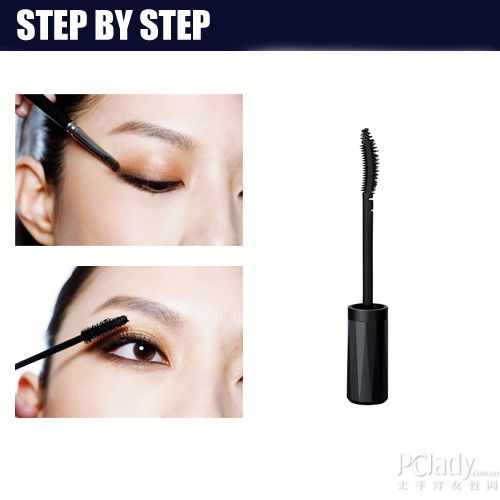 2、通过用睫毛膏刷睫毛代替黑眼线,增加眼神力道。