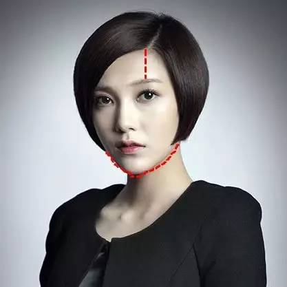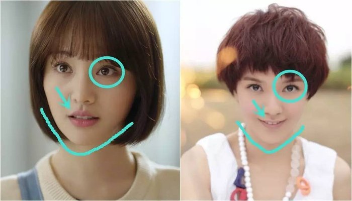由于短发造型恰当地遮挡住了上庭的部位,露出中庭和下庭,人们视觉下移,关注点会自然地落到她的五官以及尖下巴上,所以辨识度也随之提高了上来