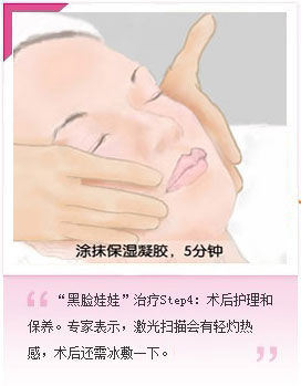 黑脸娃娃step5:保养后,需要对皮肤进行再次清洁。自此,黑脸娃娃的整个治疗过程就算结束了。