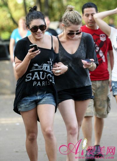 Vanessa Hudgens向来以复古摇滚风格穿着为首,这次斜肩宽大T恤正好展示了她摇滚青年的一面,自在随意是不错的休闲装扮。