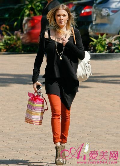 简约的T恤十分容易搭配,像Leighton Meester选择露肩T恤搭配紧身牛仔裤,星味自然散发出来。