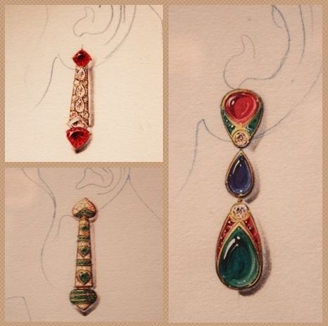 这些BVLGARI手绘初稿栩栩如生,乍看之下会以为是已制作好的高级定制珠宝成品,设计师的手稿不仅仅要体现自己独特而繁复的设计理念,似乎更要掌握宝石的色泽与光线的反射,以求达到最好的效果。宝石的美丽只有通过雕琢才能显现,宝石的灵魂只有通过大师的手笔才能重生。