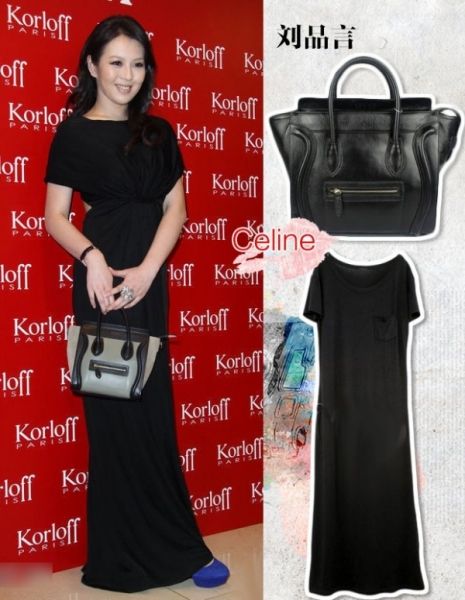 刘品言出席某活动,自己搭配了一身黑色长裙,Celine迷你黑色款笑脸包,蓝色高跟鞋,整体贵妇一般!