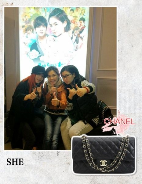 SHE再聚首,Selina背着Chanel经典菱格链条包,与姐妹一同观看电影,经典款就是经典款,百搭不厌!