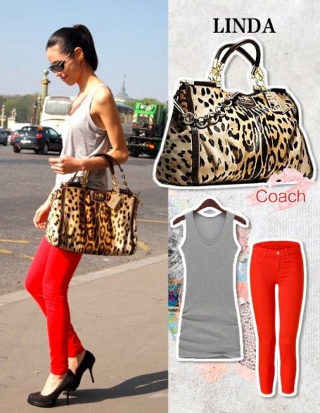 美丽俏佳人主持人linda,高挑的身材也很爱展示时尚给大家,比如这款包包就是Coach 七十周年限量版Madison系列的Caroline Dowel手袋,豹纹依旧热门不减!