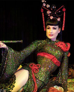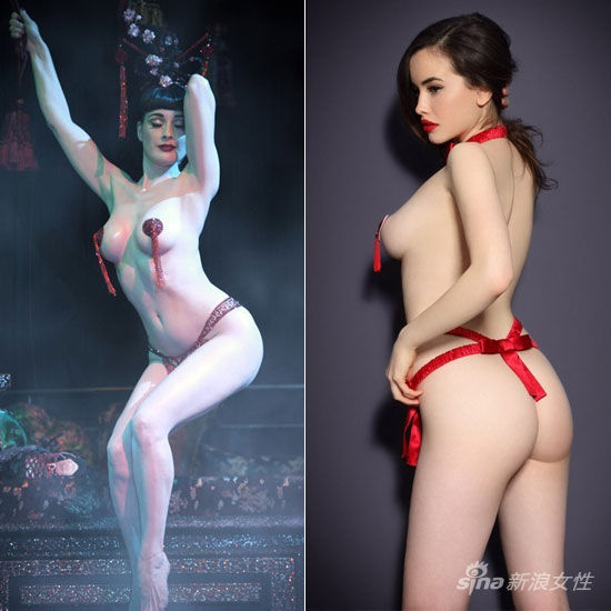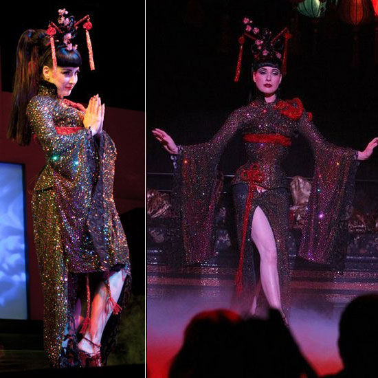 性感的脱衣舞娘蒂塔-万提斯((Dita Von Teese) 摆动着婀娜的身姿身着颇具东方风味的服装让现场更加热烈十足。不知道是舞娘有东方情愫还是看脱衣舞的人更加迷恋东方魅力呢。 >>详细