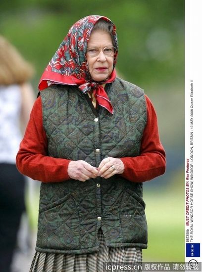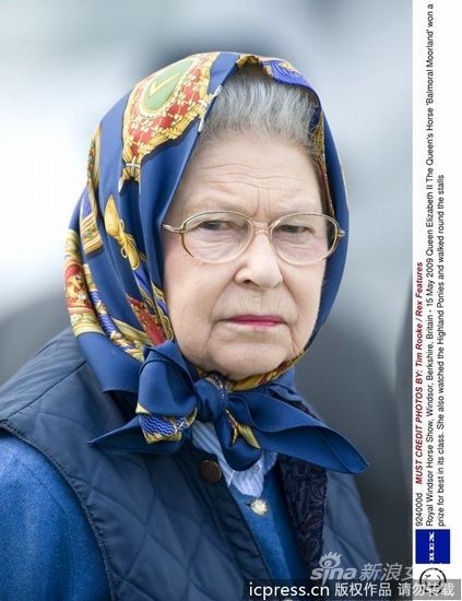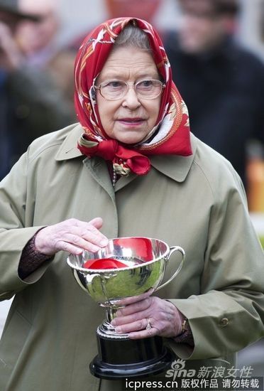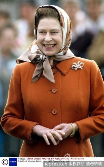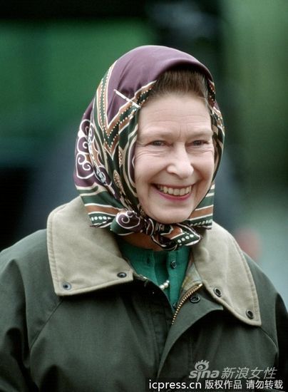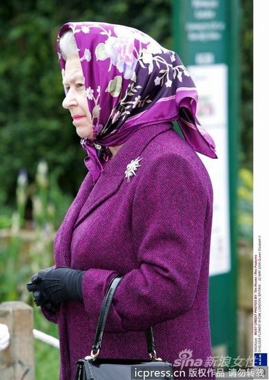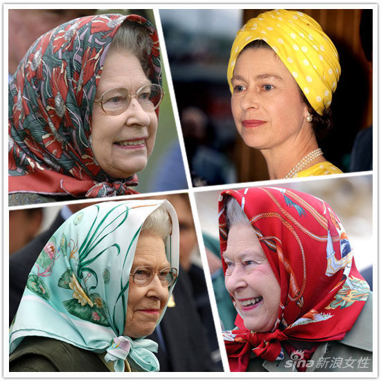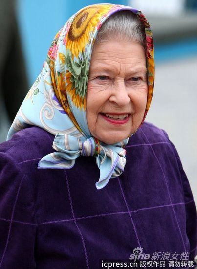 组图:一秒变潮流 英国女王村姑头巾很时尚
