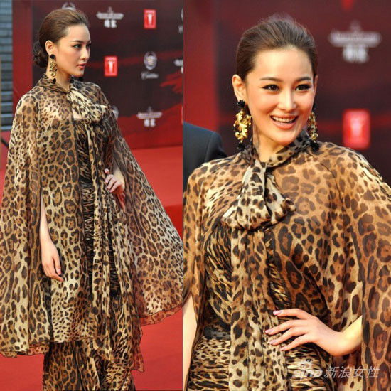 张馨予一身大面积的豹纹雪纺裙亮相,犹如“猛兽来袭”,霸气十足。