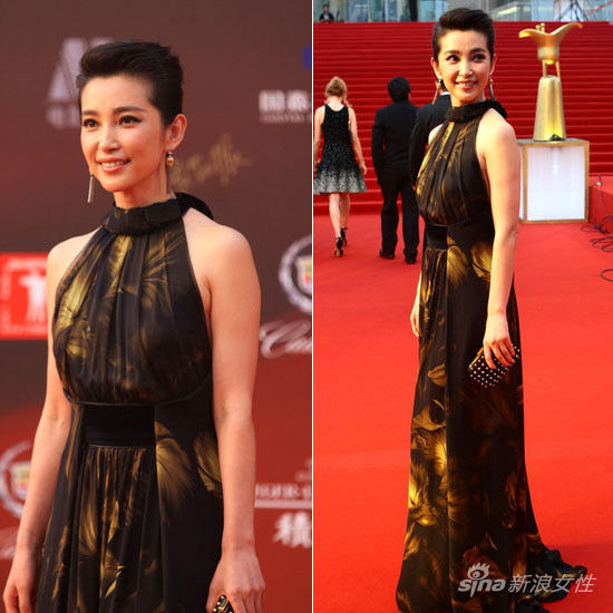 李冰冰穿着GUCCI 2012秋冬系列礼裙亮相上海电影节闭幕红毯。束腰长裙凸显了她的高挑身材,小露香肩彰显女人妩媚气质。