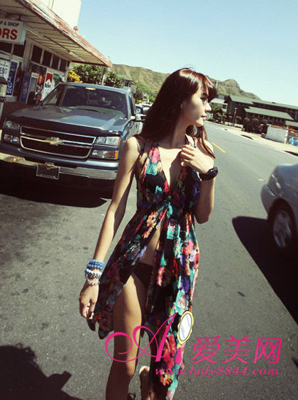 搭配tips:碎花泳装+罩衫,若隐若现更性感