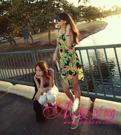 搭配tips:挂脖碎花裙子,很有异域民族风情
