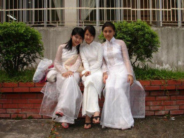 越南美女穿衣习俗:“旗袍”开叉到腰