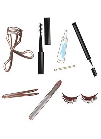 睫毛夹、小剪刀(眉毛间或尖头小剪刀)、镊子、假睫毛胶水(透明色或黑色)