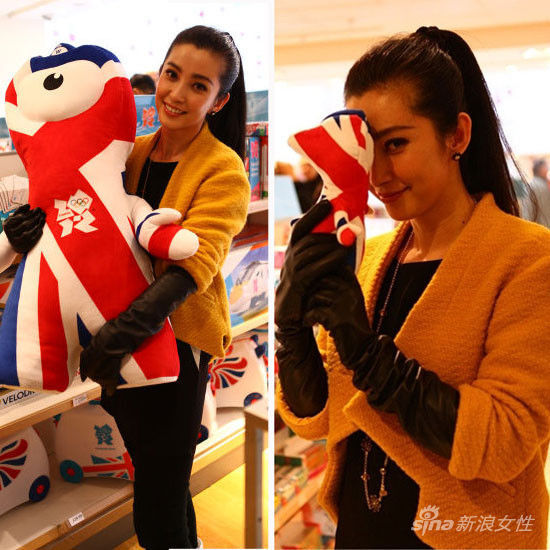 李冰冰参观奥运纪念品展览店,休闲的装扮和她标志性的马尾辫,亲切笑容中透着一股青春靓丽。