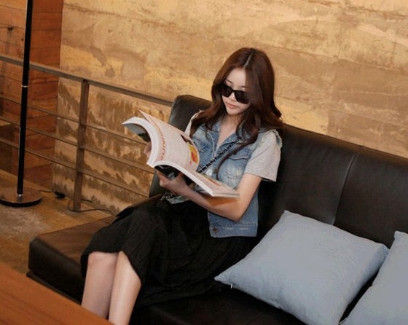 由此可见,牛仔马夹潮人们都必备的,道晖芝同样搭配了一款牛仔马夹,道晖芝选择的黑色长裙内搭,韩范儿立刻显现!