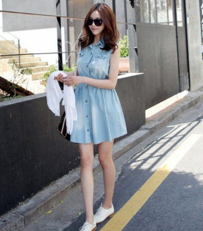 道晖芝 牛仔连衣裙也是红人们经常出镜的一款,设计很是好看娃娃领,大圆摆裙摆,韩范儿公主范儿尽收!