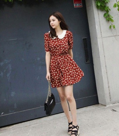 道晖芝 荷叶领连衣裙,非常的可爱,很适合道晖芝那张可爱的脸,虽说衣服可爱偏多,但是穿出来感觉气质也非常的不错!