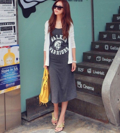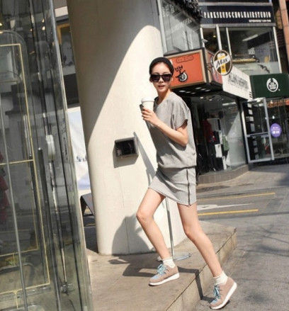 很运动的一款长T,灰色系很经典,收腰设计,搭配一双运动休闲鞋,整个韩范儿十足!也是道晖芝最常出镜搭配之一款!