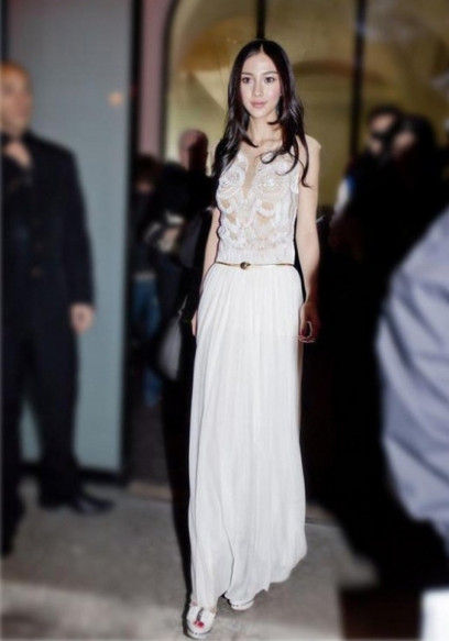 Angelababy很欧美范的一款连衣裙,采用的刺绣设计,镂空中带点性感,活动穿这款实在有大牌范儿!