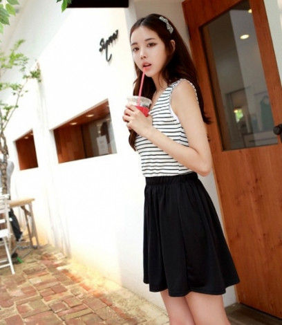大爱的条纹连衣裙,海军风格,配上黑色的雪纺裙裙,超级可爱!
