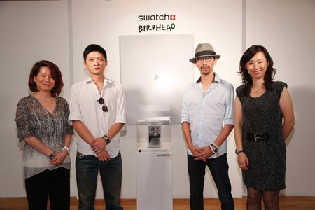 斯沃琪集团中国区总裁暨斯沃琪和平饭店艺术中心总经理陈素贞女士,斯沃琪集团中国区副总裁王珏女士和艺术家鸟头组合与斯沃琪水墨大鸟腕表合影鸟头组合的两位成员包括1980年出生的季炜煜和1979年出生的宋涛,两人都于2000年从上海工艺美术学校毕业。2004年,这两位求学时的好友成立了鸟头组合,他们的摄影作品通常是随性的抓拍,用相机记录下以21世纪的大都市上海为背景下的生活点滴,作品无处不散发着他们独到的见解。鸟头的作品在世界各地的著名画廊、博物馆及艺术院校的重要个展及群展中都有展出,其所到之处包括奥斯陆、香港、伦敦、东京、佛罗伦萨、上海和纽约等地。