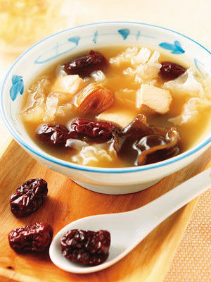 本食谱中的黑木耳,《本草纲目》中记载其可去面上黑斑。黑木耳可润肤,防止皮肤老化;大枣和中益气,健脾润肤,有助黑木耳祛除黑斑。