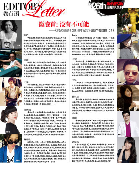 导语:没有不可能——《时尚芭莎》26周年纪念刊创作者自白。