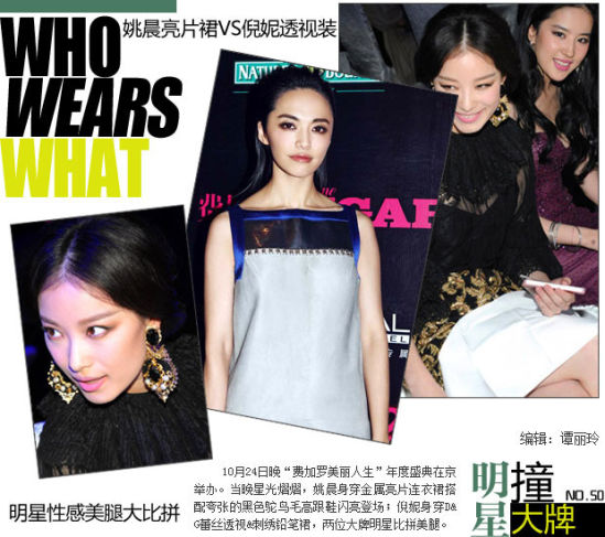 姚晨亮片裙VS倪妮透视装 性感美腿大比拼