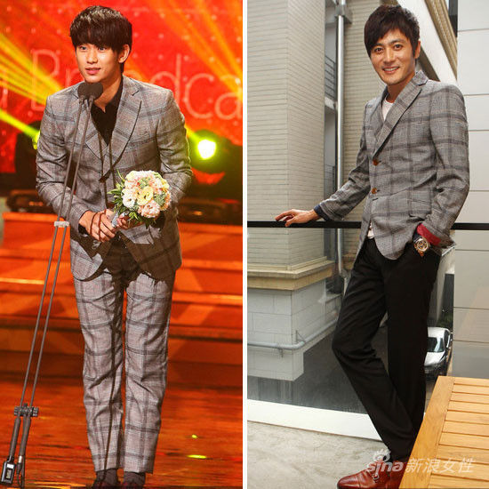 左图:当地时间2012年9月3日,韩国首尔,第39届韩国放送大赏举行。韩国放送大赏演员奖金秀炫,灰白格纹西装上阵,文质彬彬,英气逼人。