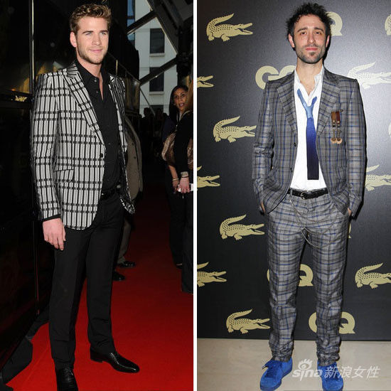 左图:亚姆·海莫斯沃斯 (LiamHemsworth)身穿Gucci灰色格纹西装, 风流倜傥。