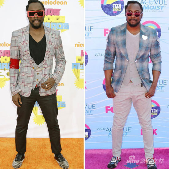 右图:2012青少年选择奖红毯 Will.i.am爱心格纹西装爆潮。