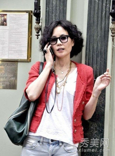 王菲红色短款外衣内搭V领白TEE,再加上一款宽松的破洞牛仔裤,非常给力也很亲民的造型。生活中的她,穿搭风格非常的时尚、大气,大龄女们可以多关注一下她的时尚资讯哦!