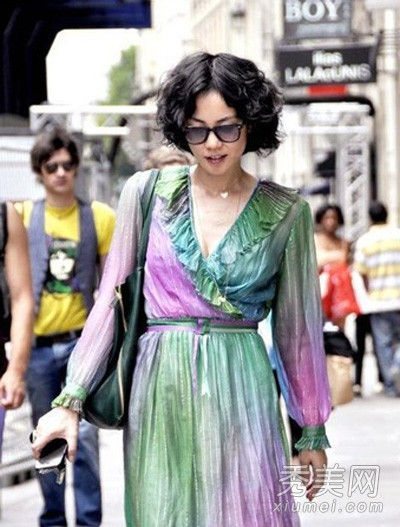 王菲彩色渲染感觉的连衣裙,建议普通人还是不要尝试,万一穿成大妈范儿就不好了,穿衣服气场这东西着实重要。