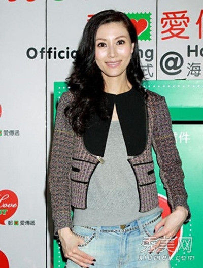 李嘉欣小香风的粗呢花外套,短搭很出彩,配搭简约的灰色针织衣以及浅色牛仔裤,就很时尚、简约。