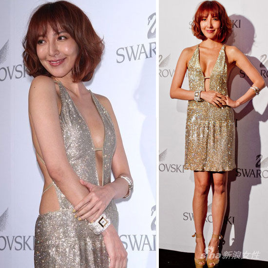 2012年9月28日,台北,施华洛世奇(SWAROVSKI)在知名夜店举办新品发表会,特地邀请多位女模及明星站台虽然天气渐冷个个依然穿着火辣,杨谨华深V亮片连衣短裙更是大露美胸及美背,成为全场焦点。