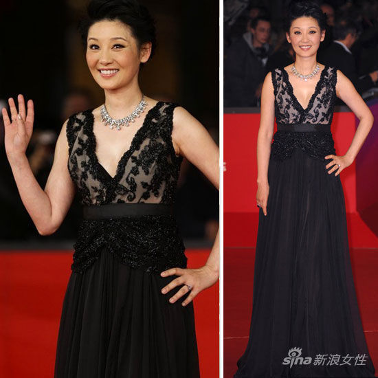 当地时间2012年11月9日,意大利罗马,第7届罗马电影节开幕影片《Waiting For The Sea》首映。徐帆黑色深V 蕾丝百褶裙温婉可人。