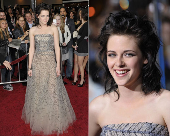 《暮光之城3:月蚀》在意大利举行首映礼,剧中主角——美艳不可方物的克里斯汀一袭黑色戏剧效果玛切萨(Marchesa)小礼服登场惊艳四座,胸口的立体花朵设计别出心裁,她的出现吸引了所有人的目光。