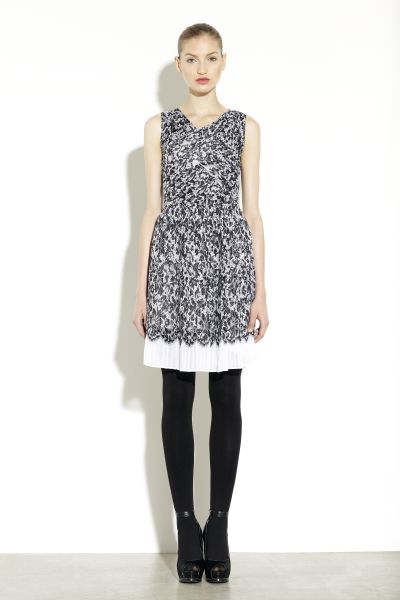 几何印花的明快图案,打褶雪纺的黑边礼服,