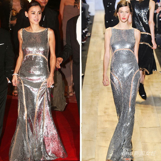 当地时间2012年10月3日,韩国釜山,第17届釜山电影节开幕。张柏芝以一袭Michael Kors 2012秋冬系列的裙装亮相。这条光彩夺目的银色亮片露背长裙让张柏芝再一次地展现了优雅范儿,被观众大赞惊艳。