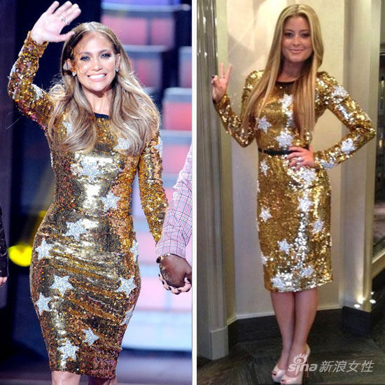 同款Dolce & Gabbana五角星金色礼服,霍莉-凡蕾丝撞衫詹妮弗-洛佩兹勇气可嘉。