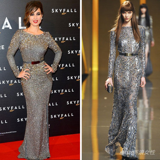 当地时间2012年10月24日,法国巴黎,影片《007:大破天幕杀机》巴黎首映礼举行。贝纳尼丝-玛尔洛身穿Elie Saab12 秋冬银灰色连衣裙,闪片高开衩搭配细腰带凸显玲珑身材。
