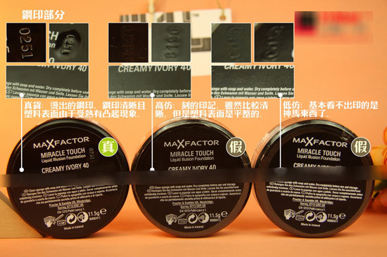 批号钢印,正品的钢印清晰,塑料表面由于受热有凸起现象。仿品的钢印做的就……
