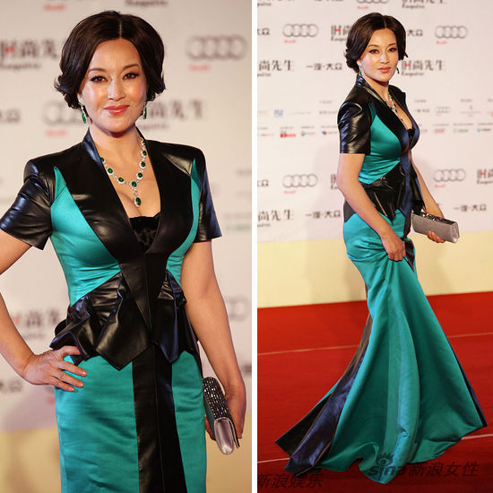 2012年度时尚先生盛典现场。虽为“先生”盛典,众多女星也盛装出席。刘晓庆宝刀未老,身着束腰低胸礼服,大秀乳沟风韵犹存。
