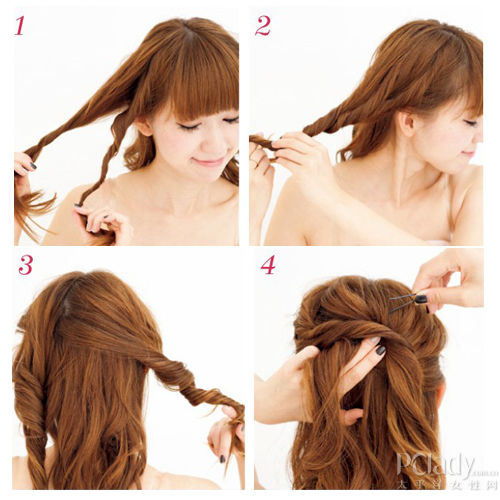 放弃了繁琐的编发,只是用简单的手法将头发分区扭转,即可打造出优雅不失甜美的公主头扎发,修饰脸型又带几分气质感,很适合忙碌的OL喔。