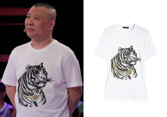 12月12日,《非常了得》节目。郭德纲身穿LV粉色花压字印花tee,在 tee外面搭了一件黑色窄领西装夹克。不可否认的是,老郭这样搭配确实把这件衫穿得很时髦,黑色西装外套既显瘦又凸显了T恤的亮眼。 有网友评论:“最喜欢的叔叔穿了最喜欢的T恤”。不过,也有的网友评论:老郭是真的瘦了?还是拍的角度显的?还有的网友说,老郭把人家LV 的T恤字母都给撑大变形了! 这件印花棒球夹克也是LV 2012新款。印花可谓是今年最IN的潮流元素,特别像这种满身印花,虽然同色系印花不那么陈杂高调,但也减少不了这件外套的潮流度。 丝质外套纹理自然,也让它变成遮掉大肚腩的利器!郭德纲的品味可谓“了得”! 郭德纲身着Givenchy金属五角星立体装饰黑TEE 2012年10月10日播出的《非常了得》上,郭德纲身着Givenchy 金属五角星立体装饰黑TEE亮相,这是他身着Givenchy的最新郭式LOOK,沉稳的黑色他驾驭的是惟妙惟肖,合适的很啊! 郭德纲身着Givenchy 黑色渔网装 2011年5月15日,德云社副总经理、郭德纲经纪人王海举行婚礼。郭德纲身为主婚人上台致辞,当天一身黑色渔网装也遭到网友的热议。而这件渔网衫又是来自品牌Givenchy。已经不是一次因为此品牌引发热议,曾经的“大蒜与咖啡论”,把郭德纲是否是“大牌杀手”推上了风口浪尖,是杀手还是型男,郭德纲表示媳妇买什么他穿什么,从来不挑,只要不光着就好。 渔网装内搭印花T,有人夸赞老郭时髦新。郭德纲非常喜欢印花,这很难得,毕竟花衬衫对于一般男性来说,很难驾驭,就连吴彦祖[微博][微博]、黄晓明[微博][微博]这些公认美男,都不敢随意尝试,可人郭大爷硬是穿了一件又一件,并且乐此不疲。 Givenchy 2011春夏系列的豹纹衬衫 郭德纲穿着Givenchy 2011春夏系列的豹纹衬衫,出席大S[微博][微博](微博)的婚礼。 时尚毒舌gogoboi:“郭德纲穿着Givenchy2011春夏系列的豹纹衬衫,出席大S的婚礼。郭老师紧随潮流而又不屈服于出潮流,穿最in的豹纹,搭配墨镜和肚腩,堪称大款界的凯特莫斯;郭老师剑走偏锋、因地制宜,虽气势汹涌如猛兽,可丝毫不和新郎冲突,哪有新郎穿豹纹的?加上那宠辱不惊碎人心的小酒窝,icon噢!” 郭德纲身着Givenchy 2010新款男装PK麦当娜前男友 这是郭德纲第一次被发现有大牌情结的段子,在微博上网友发出郭德纲穿Givenchy 2010春夏系列的几何印花Tee”的帖子,如对比图看来,果然是两身Givenchy 2010春夏系列的几何印花Tee。然而,即使是最华丽的哥特风格,这样看起来,却总是有些让人不知所措。 如果你熟悉时尚圈的话,Givenchy 2010春夏系列右侧原版的那张黑白格的TEE,是由麦当娜麦姐的前任小男友所演绎,这么一来郭德纲和T台上麦姐的小男友一对比,郭德纲的这版 “Givenchy 2010春夏系列的几何印花Tee”,别说,倒还真是有些“返璞归真”的意思! 此前,郭德纲穿Givenchy 2010春夏系列的几何印花Tee,遭到了众多网友的嘲讽,"Givenchy赶紧把这两件衣服给销毁了"、"Givenchy设计师听闻后,昨天哭了一 整夜",这两件衣服印染立体效果,带着中东风格的T恤着实招摇,黑白格的Tee,正是由麦当娜麦姐的小男友所穿着演绎走秀的。和T台上麦姐的男朋友一对 比,纲哥的这版"Givenchy 2010春夏系列的几何印花Tee",倒还真是有些"返璞归真"的意思! 郭德纲身穿Versace的老虎头印花t恤。虎头虎脑的印花穿在老郭身上实在妙趣横生。 郭德纲真的是一朵肥大又宽广的奇葩!在他看来豹纹早已OUT,这宽肩“小细腿”典型的倒三角身形。瞧瞧这件Comme des Garcons 2011春夏系列的骷髅衫,被浑圆的身子撑的有些变形的骷髅图案,邪恶中还挺可爱。Ferragamo红鞋那是踩着青春的微博飘然走来! 别以为郭德纲只会穿着长褂嘚吧嘚,私底下他可是百分百潮男!(图左)早在今年年初郭德纲拜见小品王赵本山[微博],黑色漆皮棉服配仔裤,那双棕红色短靴实在是抢眼!(图右)在3月的“郭德纲从艺二十周年”系列演出闭幕式发布会上,更是穿着黑色波点西装搭配黑色CK拼接皮鞋现身,几次现身都是鞋上抢眼,看来郭德纲也是个鞋子达人!