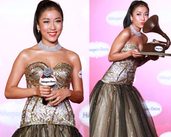 吉克隽逸红毯星风尚 黄金假乳穿上身