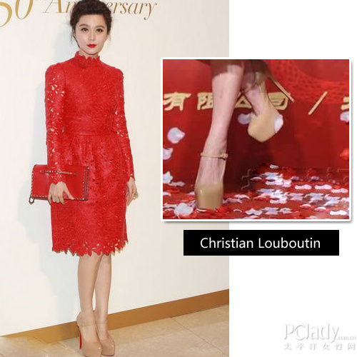 这双红底鞋从2011年开始变出现在范冰冰的脚上,2012年更是全天候午休的跟随范冰冰驰骋于各大红毯、活动,从优雅的连身裙到甜美的蓬蓬裙,这双裸色高跟鞋都应对自如。