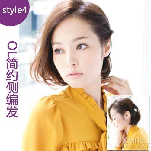由右往左的编发塑造出超强层次感和立体感,这款随性自然的造型,浪漫中带着清爽,微微卷翘着、舞动着的发梢,可爱而且小脸效果一流。是可爱气质或时尚(微博)MM首选,回头率绝对 百分百 。
