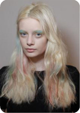2013 威娜国际趋势“数码炫音”的色彩创意在春夏时装周舞台上大受追捧,创意大师 Eugene根据这一多彩的趋势在 Peter Som 秀场上打造出了“边缘女性”的造型,利用与发色相近的色彩看似随意地运用在了模特头部不太明显的位置,使整体造型呈现出自然而又随性的立体感。然而即使远离夸张的舞台, “彩虹风”在日常生活中依然盛行。彩虹发色俨然已经成为今季的主旋律,色彩冲撞的恰到好处,值得我们细细玩味。