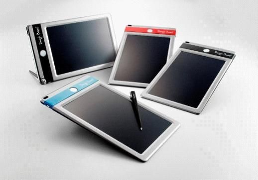 “Boogie Board JOT”有红、蓝、黑三种颜色可供选择。可用于办公会议沟通讨论,学校书写练习,或当做简单记事便条、家人间的留言板等。